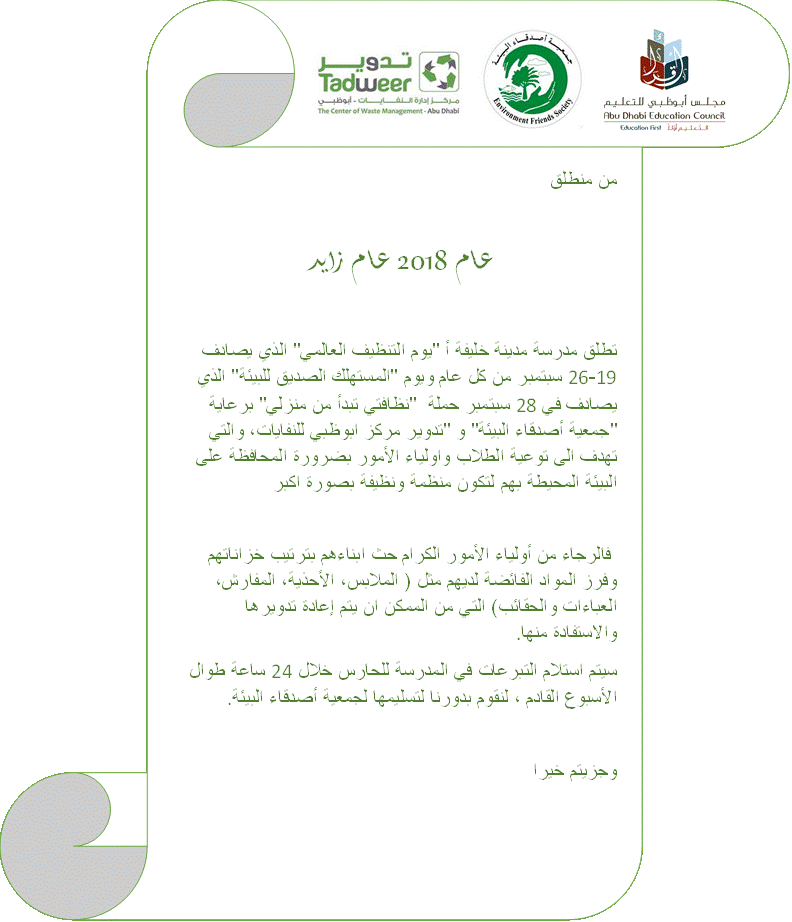 نشكر لكم جهودكم في المدرسة وحرصكم على فوز مدرستنا في المسابقات التي تدخلها ، ونوداعلامكم بمسابقة حملة "فعل الخير من أجل الغير" التي دخلتها المدرسة وستنافس بها المدارس الاخرى، وفوزنا يعتمد عليكم انتم: